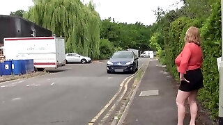 Short haired grannie shamelessly gives a suck off outdoors and fucks well