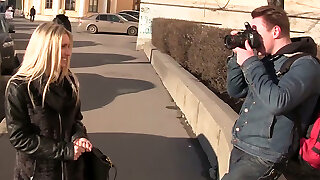 Hungry blonde nympho with small tits takes part in MMF three-way