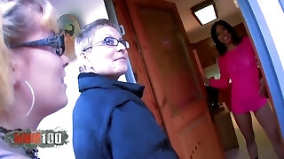 Hot first-timer FFM action with ebony teen and ugly brunette MILF