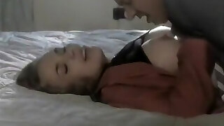 Homemade video of a black-haired chick being boinked on the bed