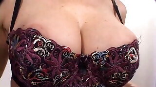 MILF juggling her tits while leaping on this cock and craving its hot jizz