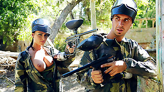 Handsome fresh girl with juicy baps Renata Fox rides big cock outdoors