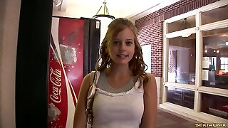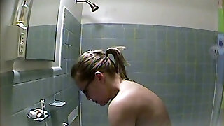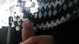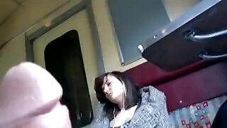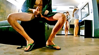 Stepsister noticed how her stepbrother jerks off his fat cock in the bathroom, she is overwhelmed, he has a very gigantic dick, she is aroused, this dame has monstrous natural tits, she is nude, she likes to masturbate a big fat cock and see how the guy cums