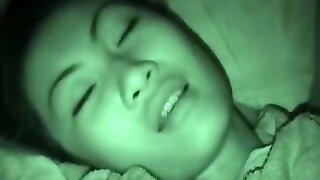 Chinese babe with big natural tits getting her tight vag fingered on her couch