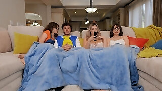 Group dicking on the sofa with insane Lilian Dark-hued & Dominika Curv