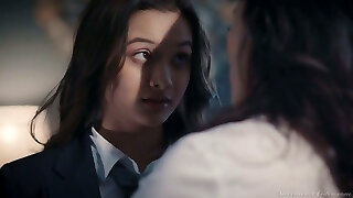 Hot like fire sexy office lesbian Alex De La Flor seduces charming honey for sex