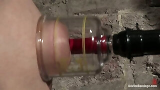 Horny huge-boobed blonde gts hooked up to a plow machine and loves it