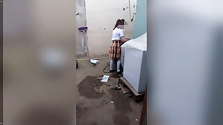 Fucking a college girl on a washing machine