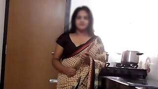 Indian Stepmom Disha Kitchen Striptease & Fucked by Son-in-law