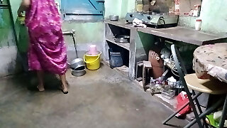 Indian bengali pinki vabi kitchen pe kam kar rahi thi or davor aakar maje se choda vabi ko or lund ka pura pani chut pe
