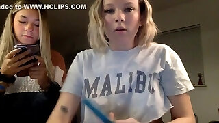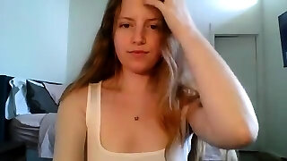 Blonde teen with huge hooter masturbating on webcam